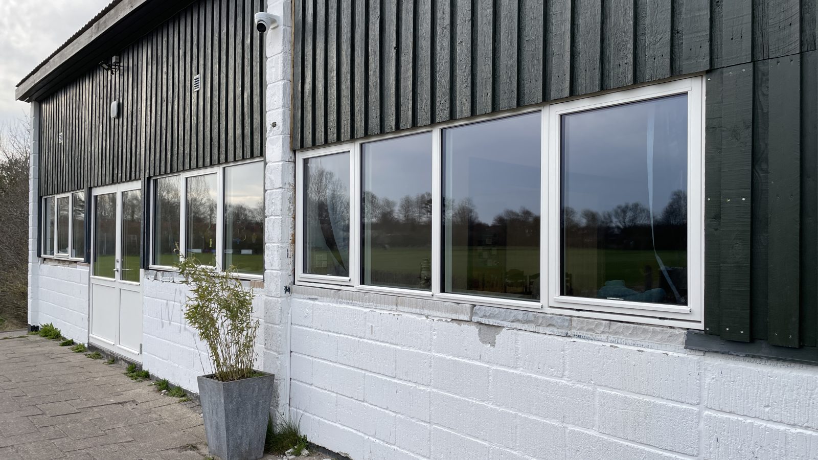 Vi bor på en dejlig stor grund på en gammel stadionplads.